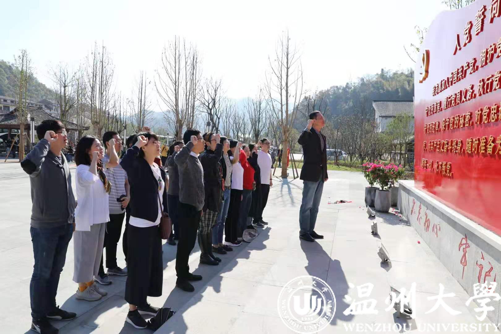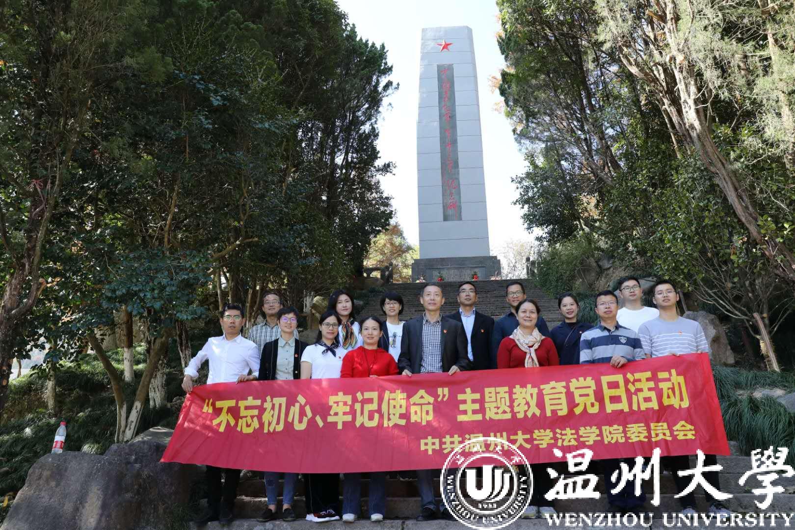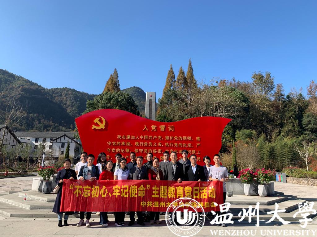 2019年11月24日,为继续深入开展“不忘初心、牢记使命”主题教育,用革命先辈的光荣事迹作为生动教材教育党员同志,使党员同志进一步加深对“初心与使命”的领悟,学院党委组织教工党员同志赴永嘉县红十三军旧址开展主题教育党日活动。