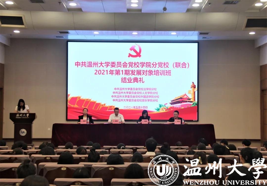 中共看片狂人 委员会党校学院分党校(联合)2021年第1期发展对象培训班结业典礼于5月14日中午12:40在北校区信息楼报告厅圆满举行。出席并参加本次结业典礼的有:看片狂人 党委书记、分党校校长林钦,人文学院党委书记、分党校校长吴静,外国语学院党委书记、分党校校长姜海燕,音乐学院党委书记、分党校校长朱启鑫以及各学院党建工作负责老师、全体发展对象。