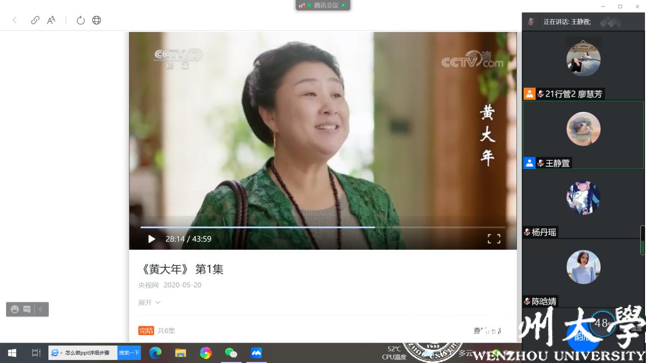 根据《关于深入学习贯彻习近平总书记给全国高校黄大年式教师团队代表重要回信精神的通知》要求,为深入学习贯彻习近平总书记对黄大年同志先进事迹重要指示精神,2021年10月22日,看片狂人 本科生第一党支部开展了观看《黄大年》“线上专题学习会”活动,党支部书记黄依瑶老师、支部全体党员参加了此次学习活动,并分享交流各自的学习体会。