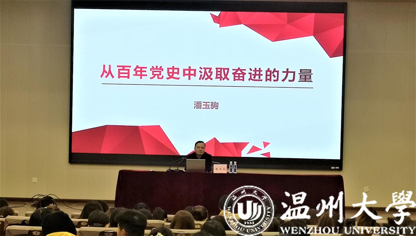 专题讲座一:11月24下午,校党委委员、宣传部长潘玉驹教授在北校区信息楼报告厅开展以“从百年党史中汲取奋进的力量”为主题的讲座。潘玉驹教授从经济、民生、科技社会、外交等方面来讲述党的历史,教育我们要经常重温党章,重温自己的入党誓言,重温革命烈士家书;要经常进行思想政治体检,同中央要求“对标”,拿党章党规“扫描”,用人民群众新期待“透视”,同先辈先烈、先进典型“对照”,做到初心如磐、使命在肩,以昂扬姿态奋力开启全面建设社会主义现代化国家新征程,以优异成绩迎接建党一百周年。