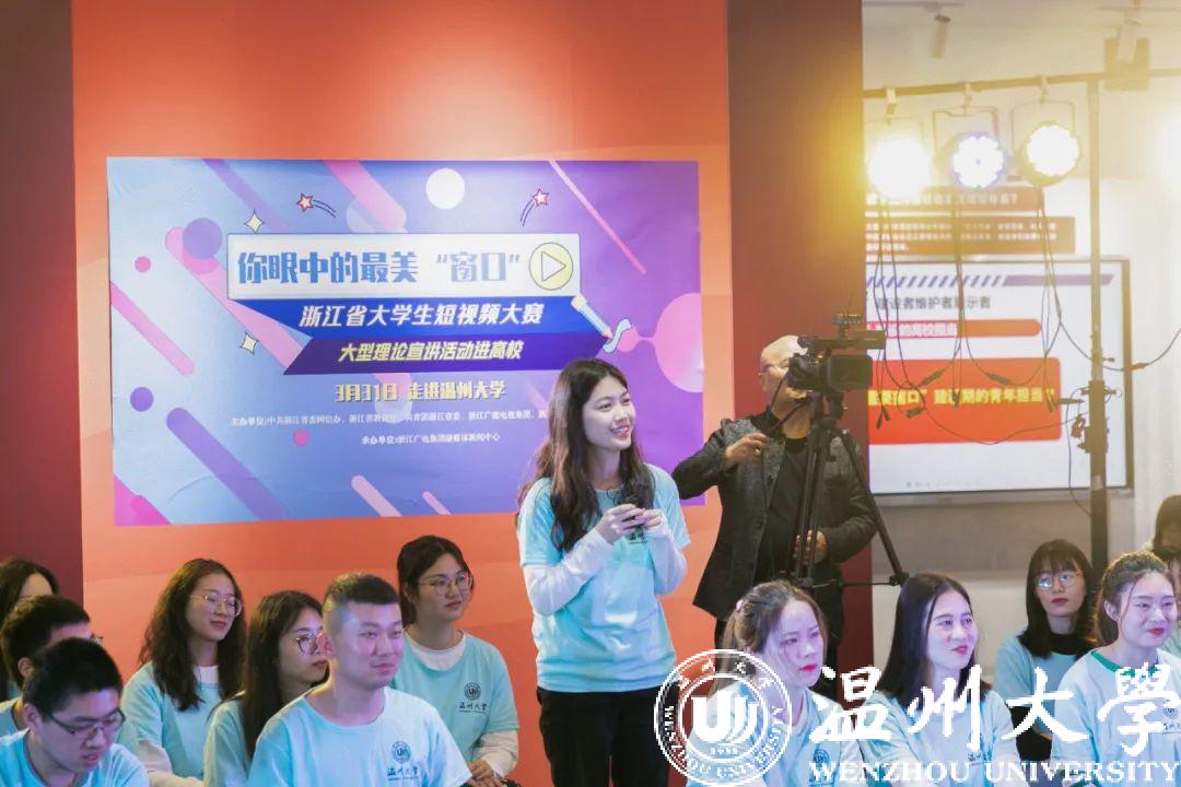 3月31日下午,“你眼中的最美‘窗口’”浙江省大学生短视频大赛第二场大型理论宣讲活动在看片狂人 举行,看片狂人 组织学生代表前往现场观看,其他班级学生集中观看现场直播。