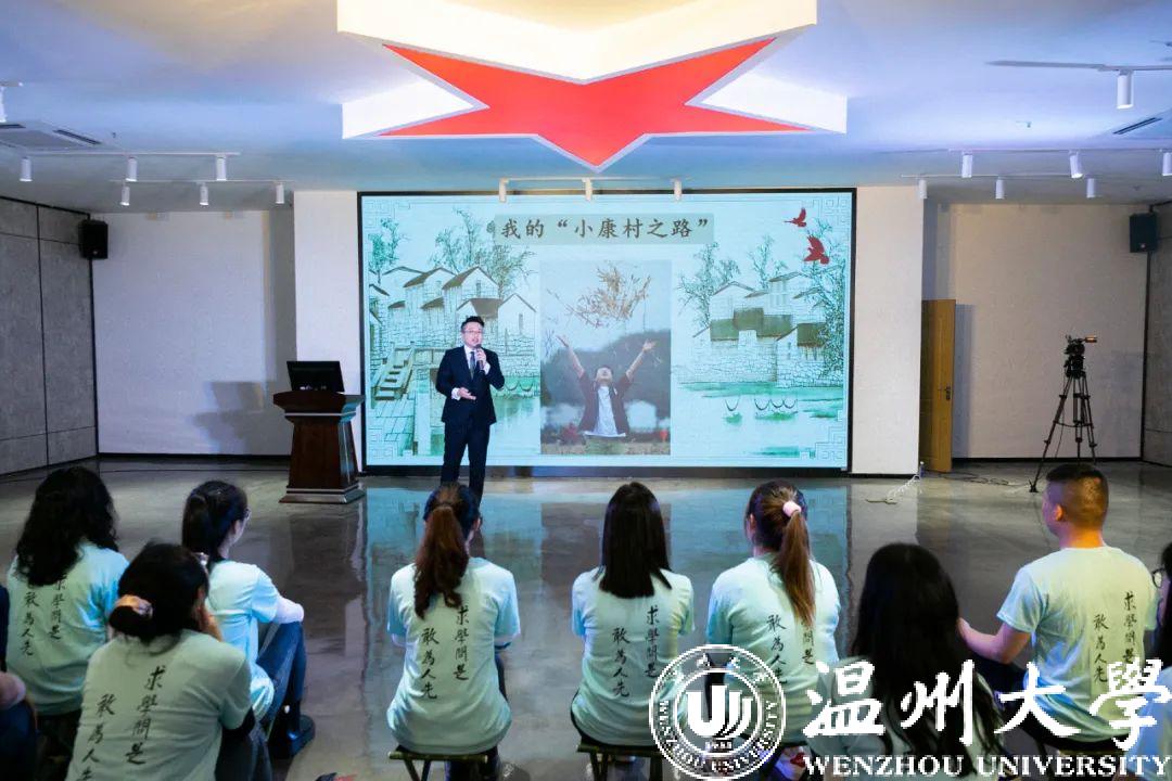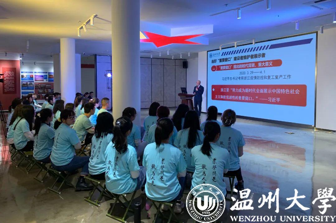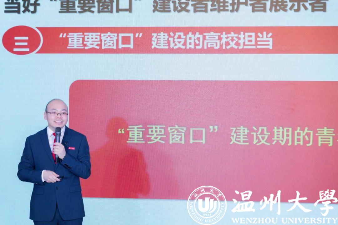 活动现场,看片狂人 马克思主义学院院长、教授、博导卓高生,为师生们带来《当好“重要窗口”的建设者、维护者、展示者》主题宣讲。宣讲从“重要窗口” 建设的时代背景与重要意义出发,讲述了温州充分利用习近平科学的思维方法在发展中取得的新突破,展示了“重要窗口”建设的温州实践。