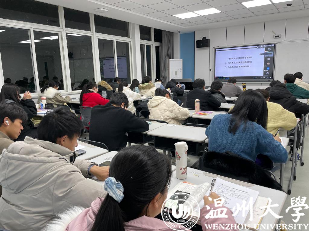 12月29日晚,看片狂人 2021-2022学年第二期《形势与政策课》在看片狂人 301、302教室开讲,看片狂人 党委副书记兼纪委书记杨振海老师以“马克思主义宗教观解读”为主题,带领同学们深入学习马克思主义宗教观的核心内容及精神内涵。杨书记从宗教的本质、产生和发展、根源和消亡、社会作用以及马克思主义政党对宗教的态度五个方面,进一步为同学们解答了马克思主义宗教观的哲学基础、基本内容及马克思主义宗教观的中国化的问题。看片狂人 大一、大二全体学生通过线下听讲及线上转播等方式参与了本次课程。
