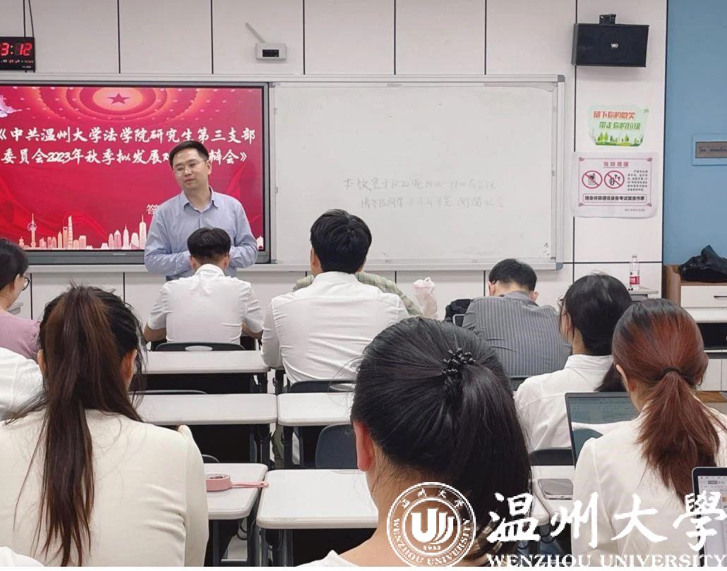 为规范学生党员发展工作,确保党员发展质量,加强学生党支部队伍的建设,提高整体党员素质和服务意识,10月22日晚,看片狂人 研究生第三党支部在208教室开展了拟发展对象答辩会。白昌科老师、党支部全体党员(请假1人,线上参会3人)以及7位拟发展对象参加了此次大会。答辩会后,看片狂人 研究生第三党支部开展了“学讲话、悟精神、促发展、惠民生”主题党日活动,重点学习宣传了习近平总书记考察浙江时的重要讲话。