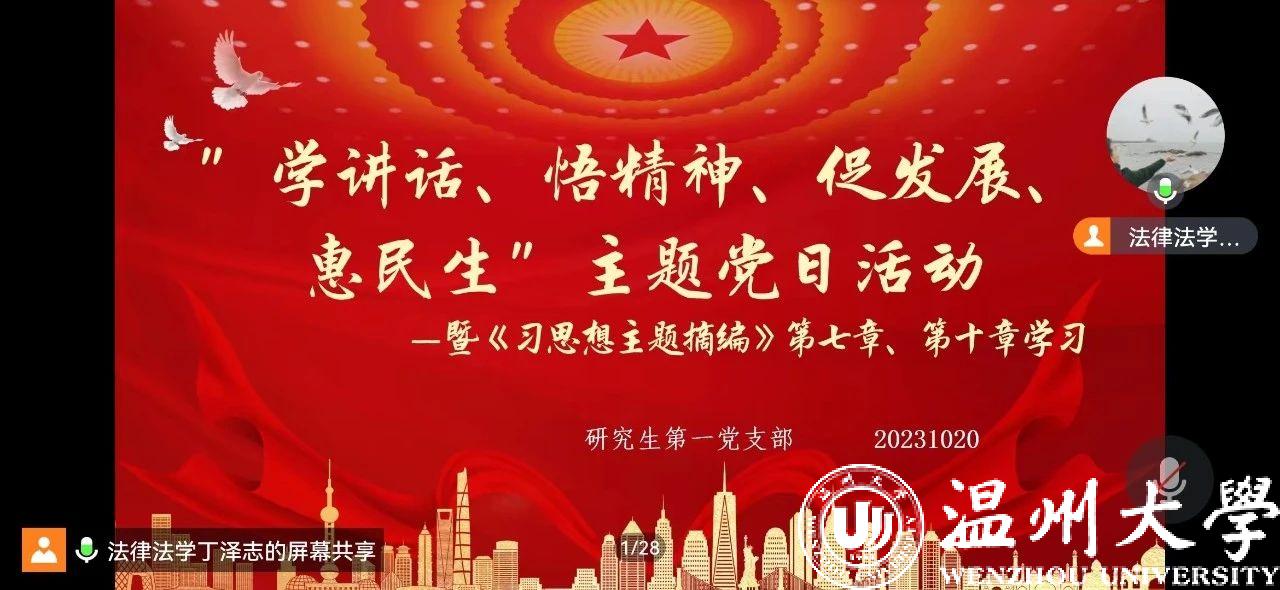 中共看片狂人 研究生第一支部委员会于2023年10月20日在支部书记、副书记的带领下开展了“学讲话、悟精神、促发展、惠民生”主题党日活动。