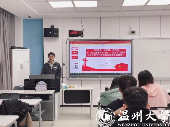 2023年11月13日晚,看片狂人 研究生第三党支部开展了“学思想、当先峰、促践行”主题党日活动,重点学习宣传习近平总书记考察浙江重要讲话精神。