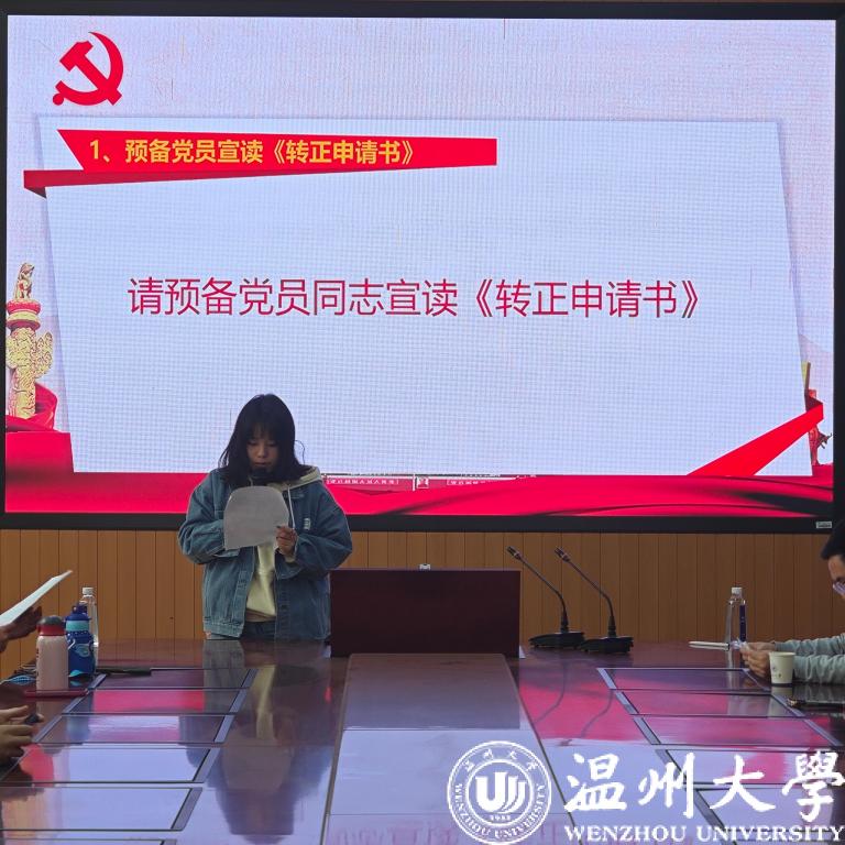 首先,由预备党员宣读《转正申请书》;其次,由支委会介绍预备党员预备期间表现情况以及报告其党校培训情况、公示情况;而后,与会党员进行充分讨论;最后,由有表决权的正式党员进行无记名投票表决。经与会正式党员投票表决,大会一致同意郑心怡同志按期转为中共正式党员。