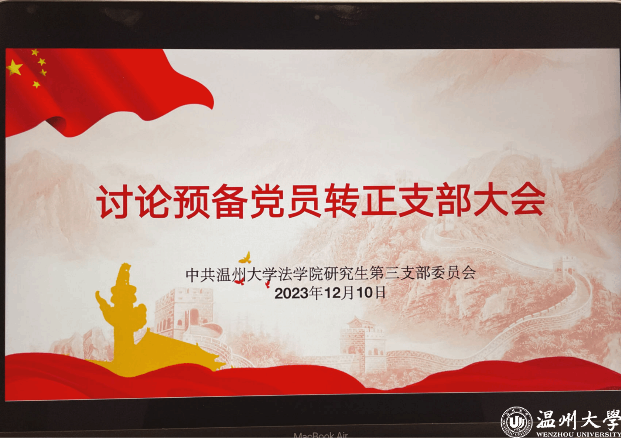 2023年12月10日晚,看片狂人 研究生第三党支部预备党员转正大会线上举行,本次会议由党支部副书记付玉霞主持。讨论预备党员:王成涛、项娉娉、郭永超同志的转正问题。