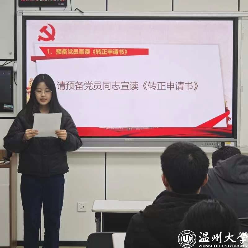 1.预备党员吕芊乐同志宣读《转正申请书》;