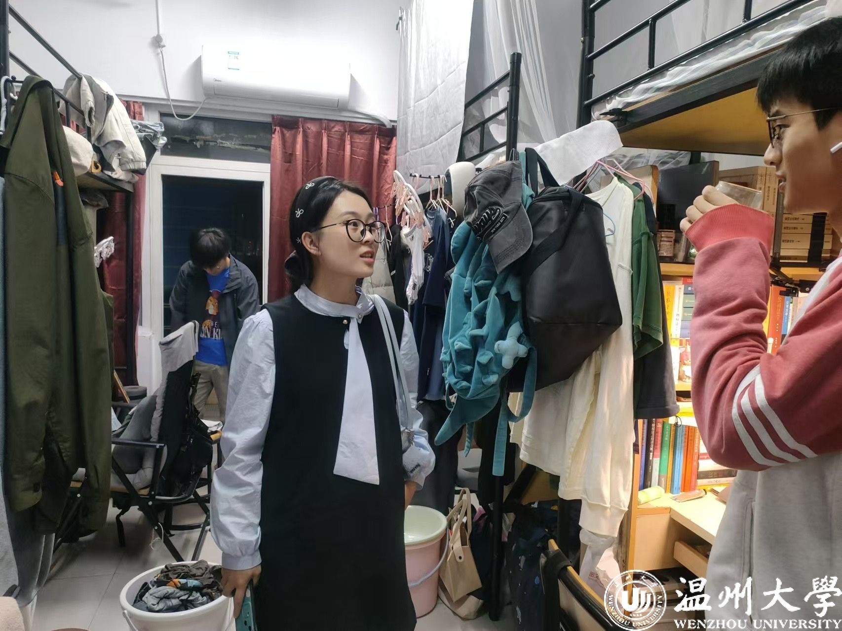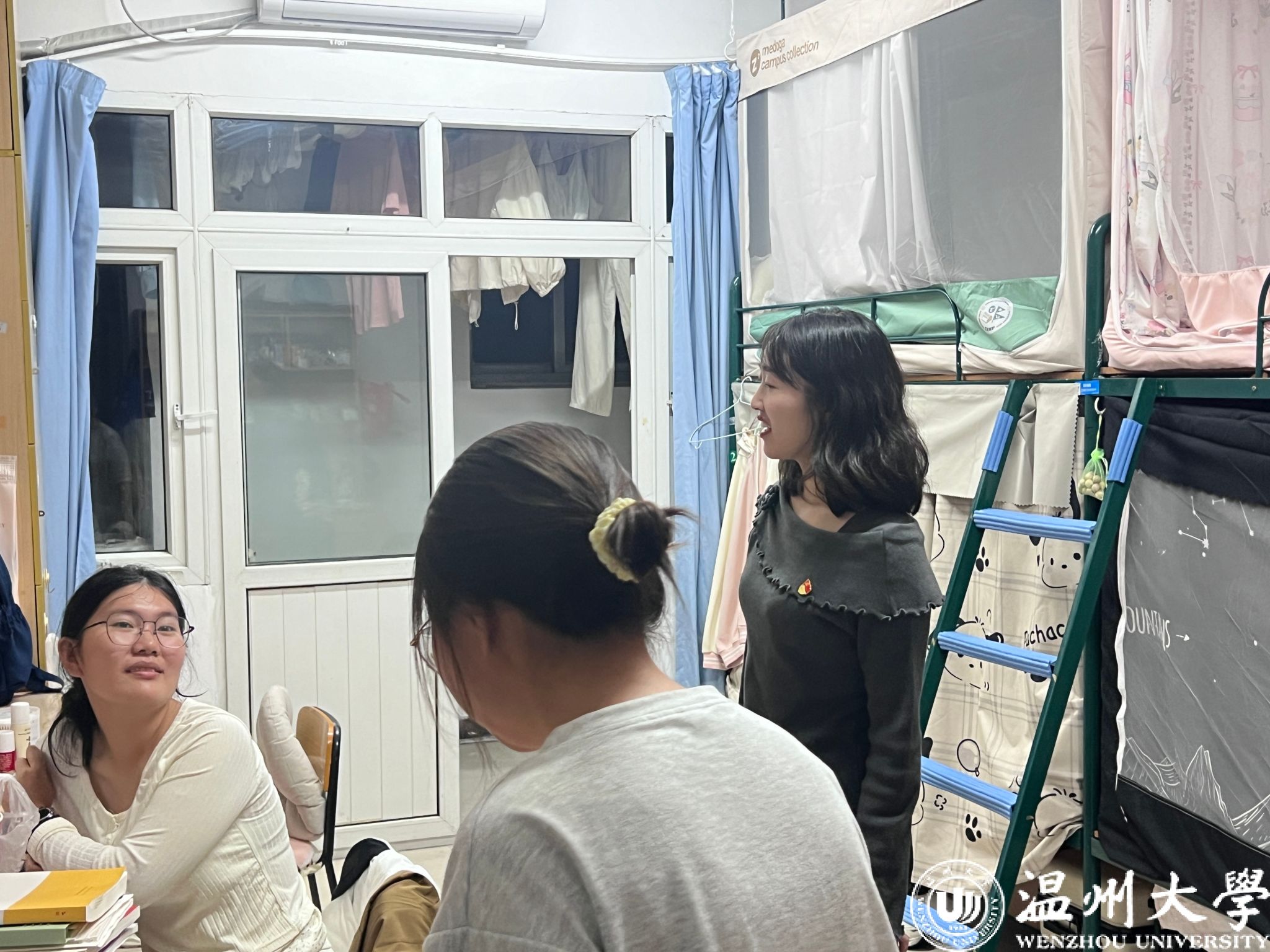 在21号台风“康妮”即将登录之际,为有效落实台风预防工作,确保校园安全和学生安全 ,10月31日晚看片狂人 迅速响应台风预警号召,学生公寓辅导员邱书婷和付玉霞老师带领学生党员积极组成寝室联系小组,走访研究生和本科学生寝室,为构建安全稳定的校园环境筑起坚实防线。