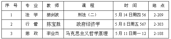 教学督导的听课分组由教学科另行安排。各位老师的听课记录表须在5月30日前交教学科。