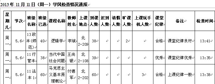 学生处每天派出人员不定时检查学生出勤,并将结果公布