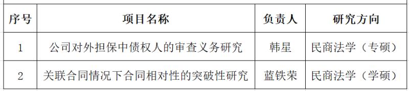 根据《看片狂人 优秀研究生学位论文培育项目实施方案》的规定,由学生自愿申请并提交相关材料,经学院学术委员会评定,以下《公司对外担保中债权人的审查义务研究》等2个项目评定为院级学位论文培育项目,现将评审结果予以公示: