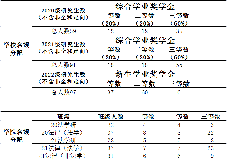 根据学校下达的研究生学业奖学金名额,学院根据班级人数、专业人数占比按一下方案分配: