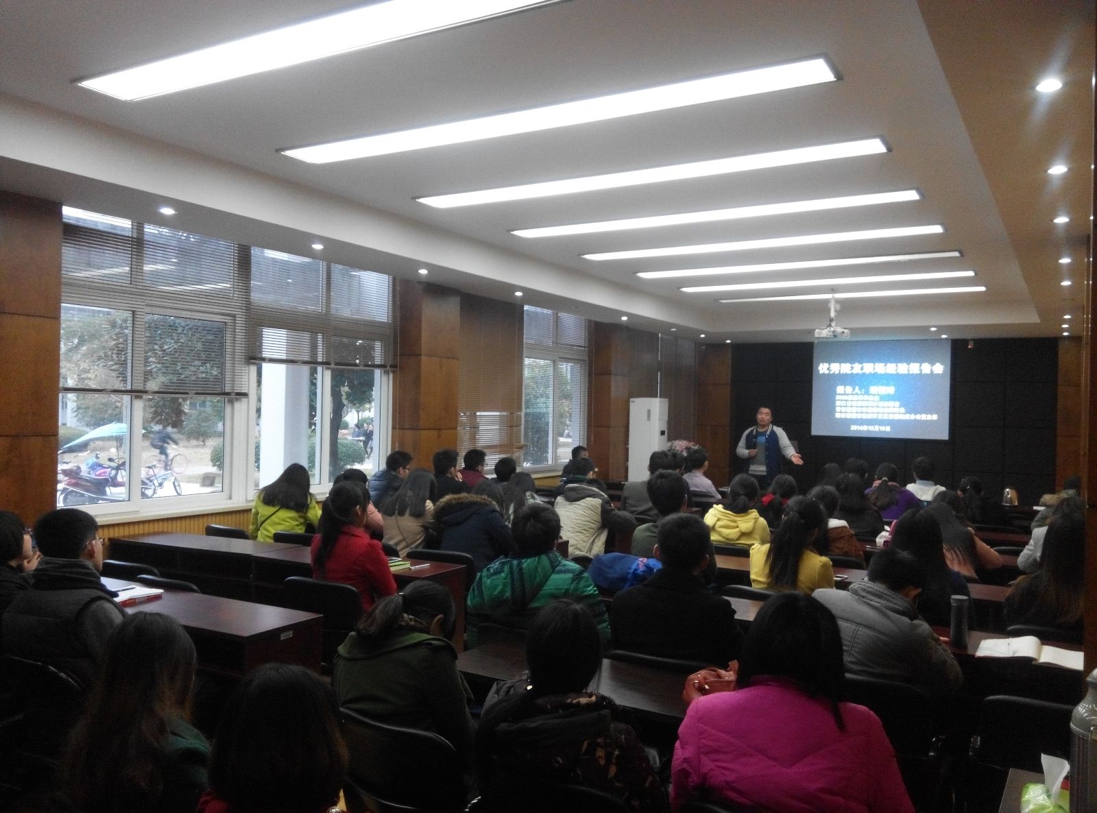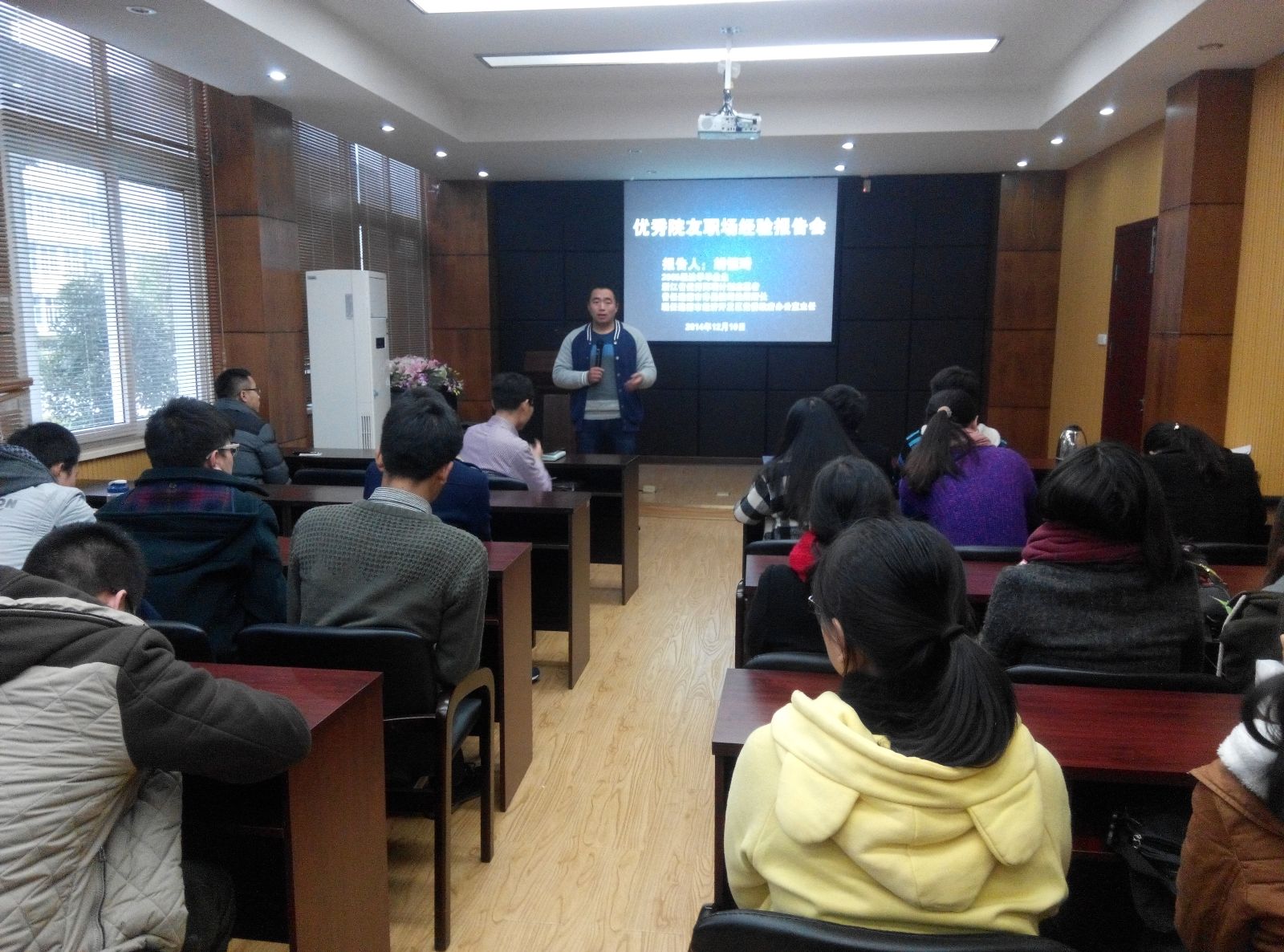 月10日下午,院学生科、团委举办的优秀院友职场经验报告会在一楼报告厅如期举行,学院党总支副书记严玲红、学生科孙德升和白昌科老师以及毕业班70余名学生代表参加报告会。