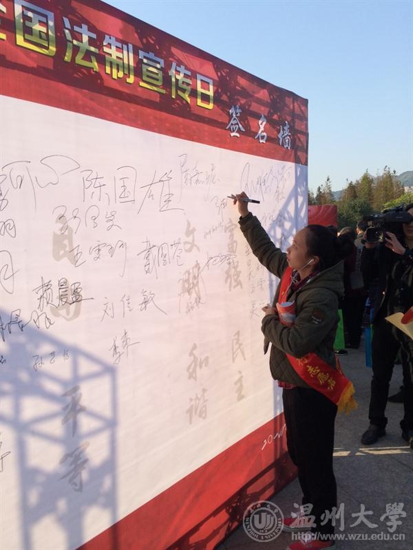 学院同学积极投身参加温州市委宣传部、市司法局、市普法办等主办的全市国家宪法日暨全国法制宣传日纪念活动,奉献自己的专业力量。