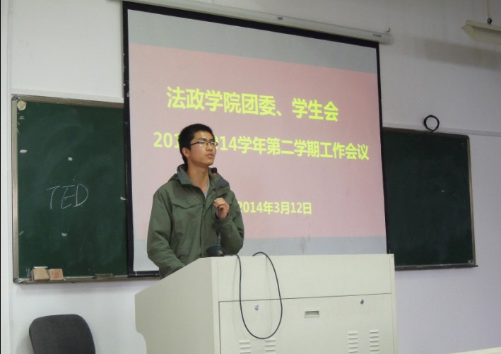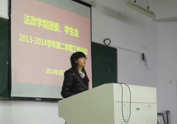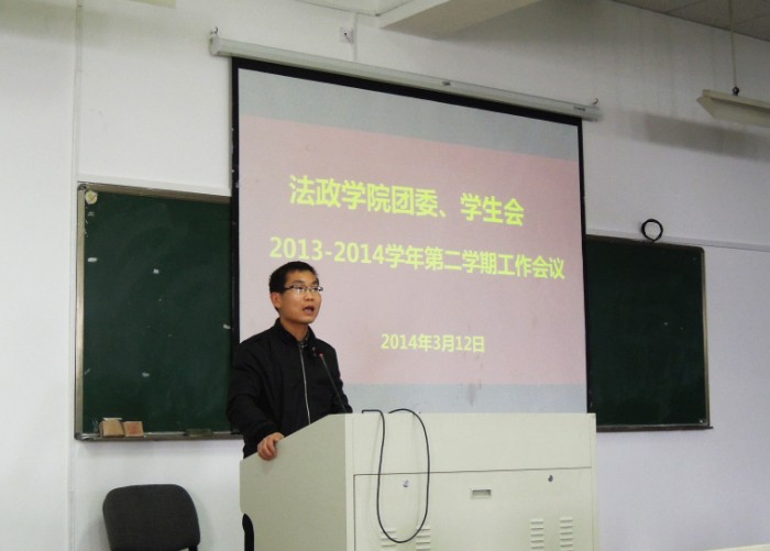 2014年3月12日星期三中午,法政学院团委、学生会召开2013-2014学年第二学期工作会议。学院学生科孙德升老师、白昌科老师,研究生助理辅导员裴潇亚、陈翠萍,以及团委学生会全体成员出席了此次会议。