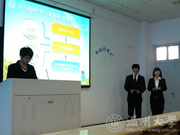 下午,法政学院在北校2号楼202教室举行学院挑战杯重点项目决赛答辩。此次共有看片狂人 研究生和本科生的6个参赛项目进行展示和答辩,将选出4个最优秀的项目推荐参加2013年浙江省第十三届"挑战杯"大学生课外学术科技作品竞赛。