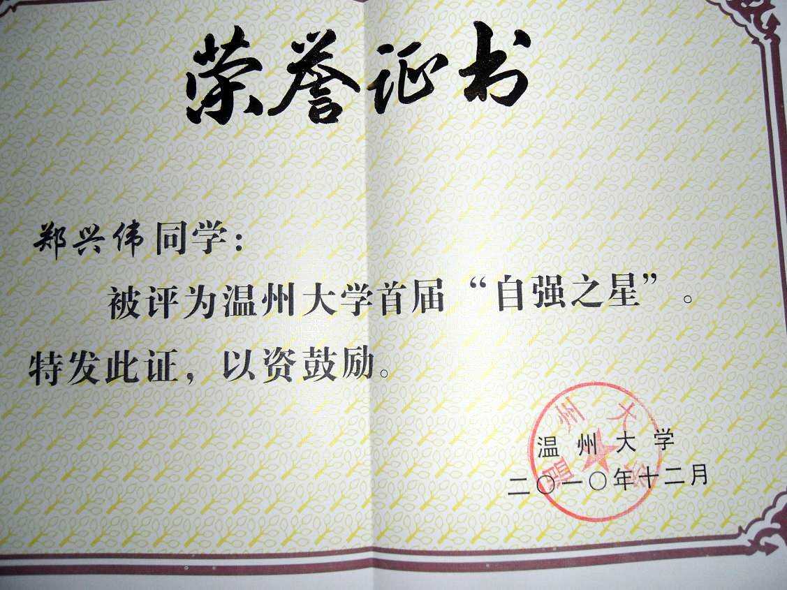 郑兴伟同学的成长历程告诉我们,自强精神和阳光心态是支撑着身在逆境中的人高扬起向上风帆的力量。一个人只要能够直面困难、百折不回,只要坚持勤奋好学、自强不息,就能用不懈的努力去提升人生的价值。他的自强精神应该传播,广大同学应以他为榜样,自立自强地学习并成长。