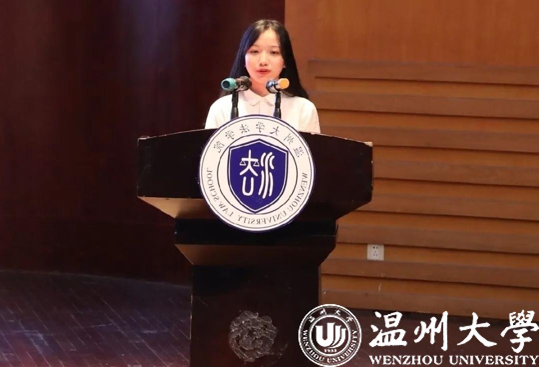 来自2020级法学3班的周佳颖同学和2020级行管班的陈杭娣同学作为新生代表依次上台发言,尽情展现了她们对专业学习的热情、对大学生活的向往与憧憬以及立志成才的决心,倡导全体新生面对新的学习方式和学习平台,始终秉持谦恭自省的态度和专一沉稳的耐心,积极探索、勇于实践。新生代表的憧憬与决心引起了在座新生的共鸣。