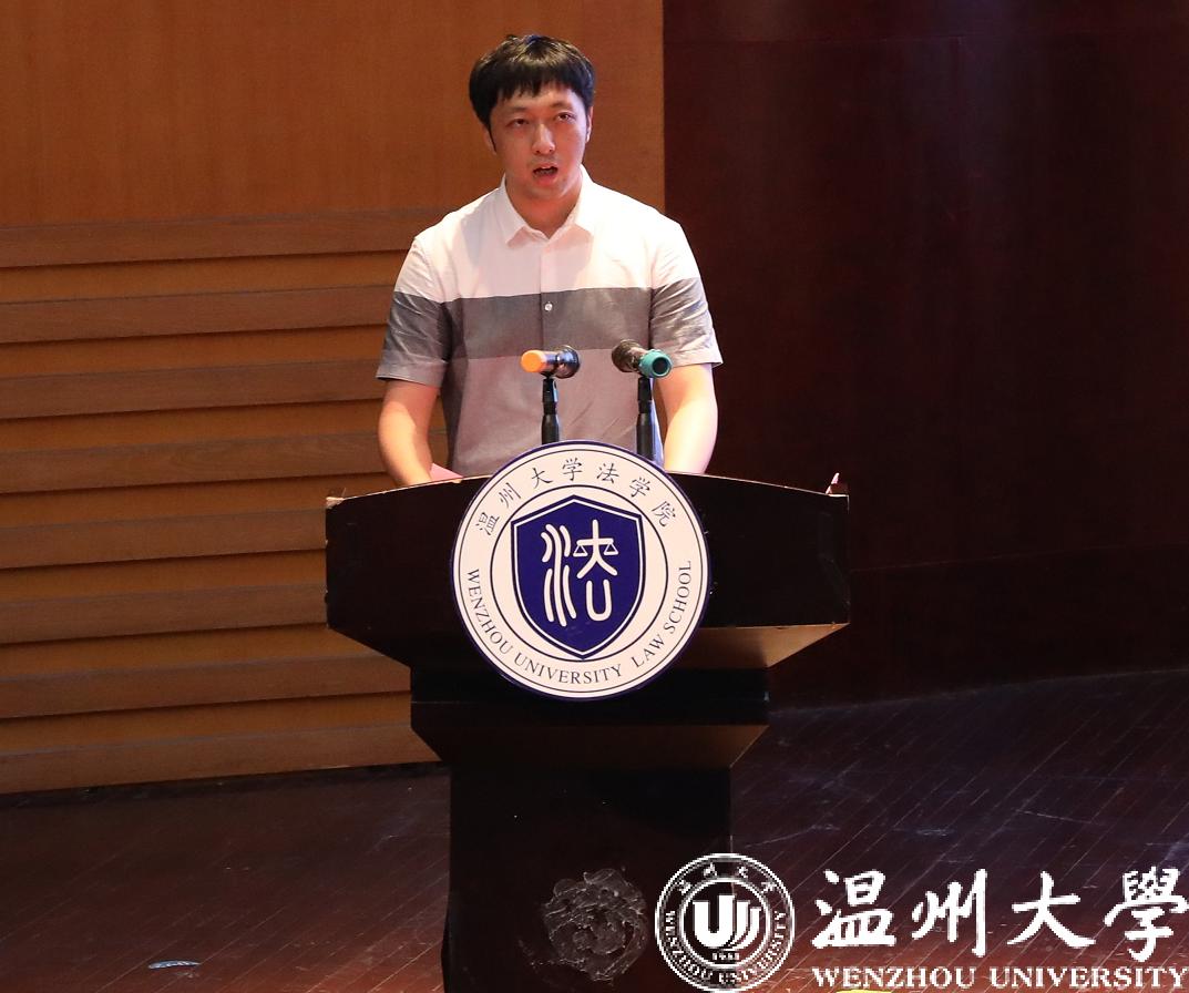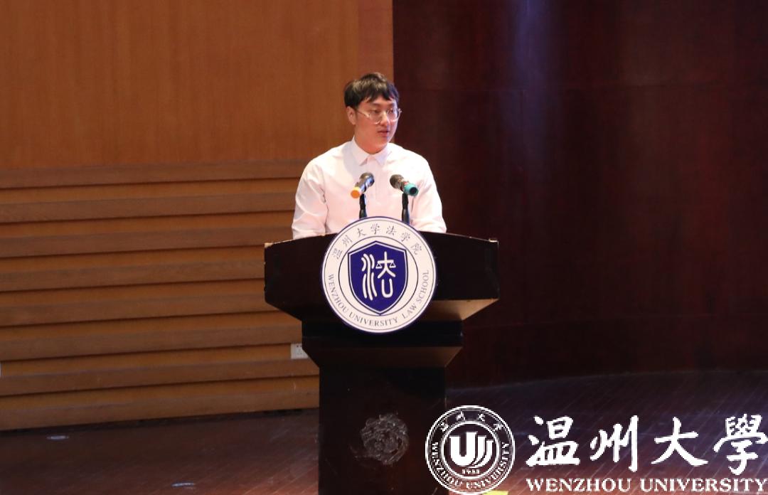 研究生新生代表叶浩男同学结合自己在中央司法警官学院的求学经历,表达了将求真务实、明辨慎思、心存善念等精神贯彻的决心。警校求学和考研的艰难历程让他对温大校训和学院院训有了更深的感触!他也鼓励新生们充分抓住机遇,做到学有所思、思有所悟、悟有所行、行有所成,在拼搏奋斗中发现人生真谛。