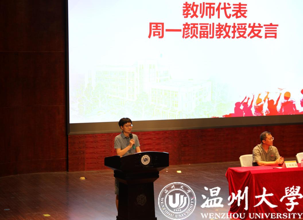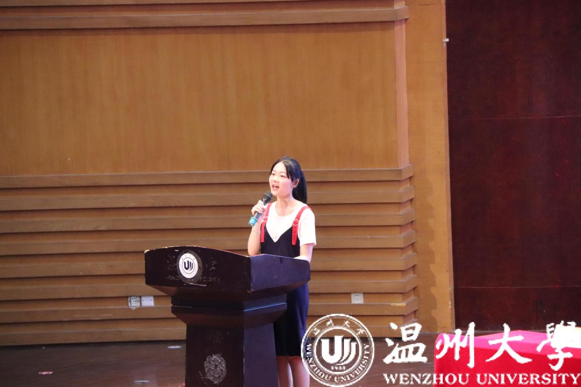 教师代表周一颜老师用幽默风趣的“当事人陈述”向大家介绍了自己,以读信的方式与新生们分享了她在2018年写给执教生涯第一批学生的一封信,令在场的同学如沐春风。周老师提到身份和角色的切换会带来全新的机会和能量,也会有始料不及的阵痛和惊喜,希望同学们低调地经营青春,慢慢把优秀变成一种习惯,用00后的精彩点亮校园、照亮人生。