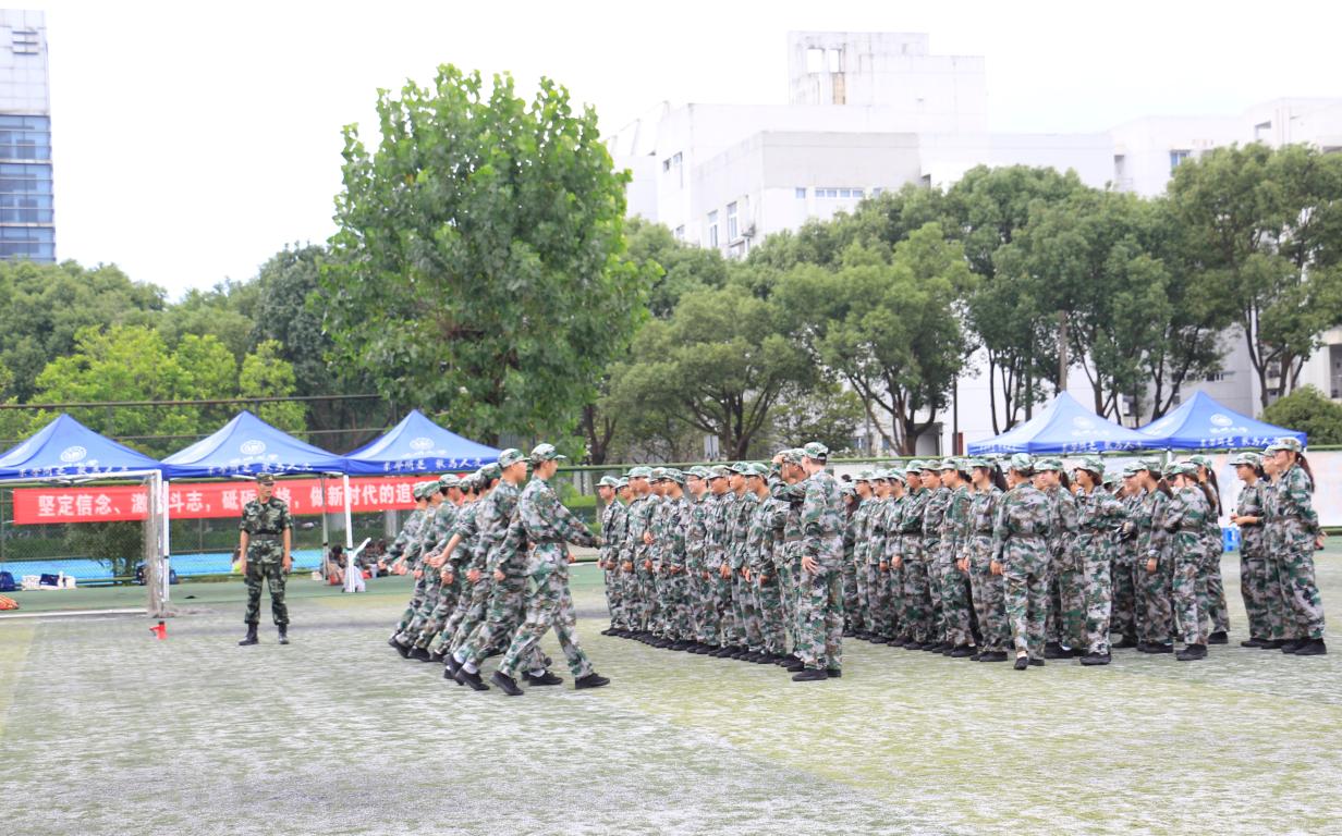 烈日炎炎下,同学们开始还不能适应军训的训练强度,许多同学逐渐感到体力不支。经过一段时间的训练后,现在的他们每天都能坚韧挺拔地立正、稍息、跨立、正步走,他们正在变得更加坚强!