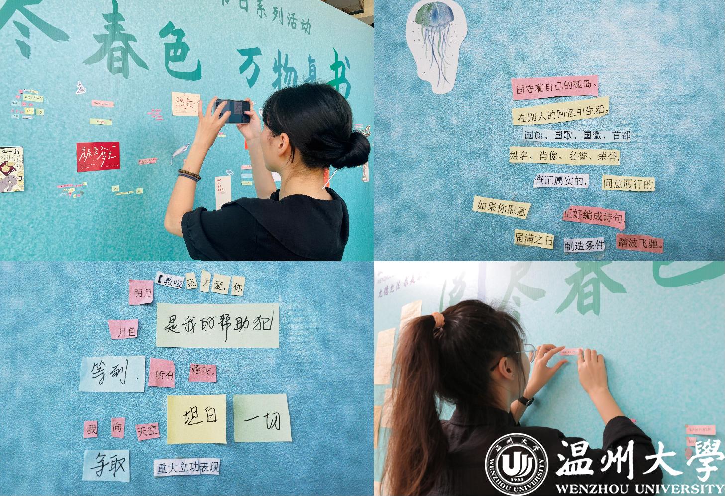 鲸,落于海底,哺暗界众生十五年;书,束以高阁,叹蒙尘落灰许多载。鲸落万物生,书籍漂流予新生,看片狂人 创新发起“鲸游书籍漂流计划”,希望大家都可以成为赋予书本第二次生命的温柔之人。同学们带上闲置书籍,写下一句留言,让手中的书重焕生机,置换另一份未知的美好。另有学长学姐们的宝贵学习资料也参与到了交换行列中,供同学们传阅博览,为漂流计划锦上添花。现场还准备了书籍盲盒,每一份盲盒里都是未知的惊喜,同学们怀揣着惊喜和浪漫,邂逅锦绣文词。图书漂流计划也将长期举行,持续为同学提供书籍交换的第三空间,以书换书,读遍春日里心心念念之书。