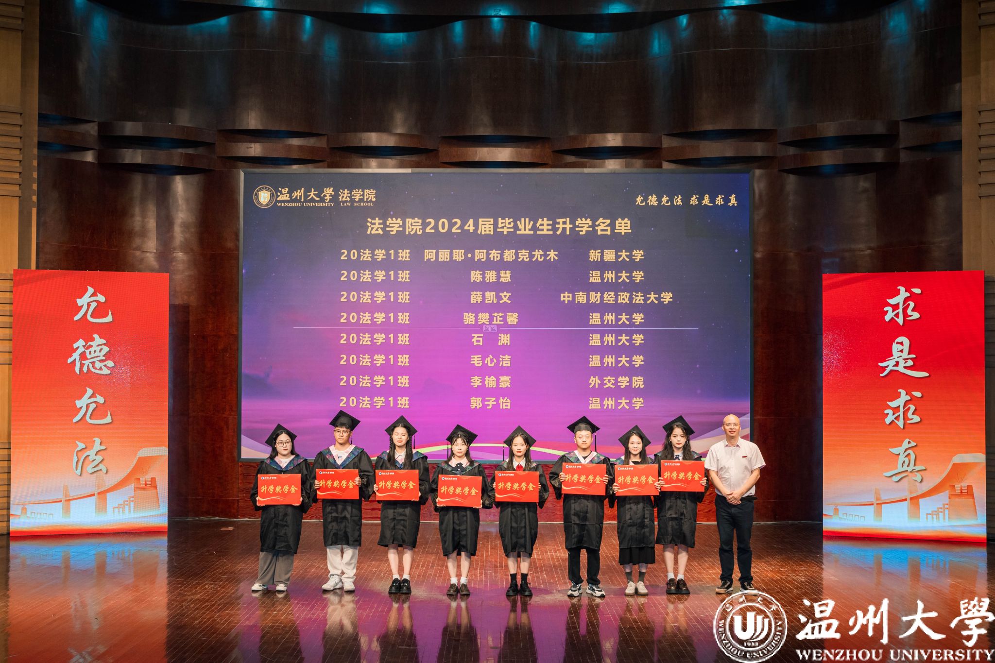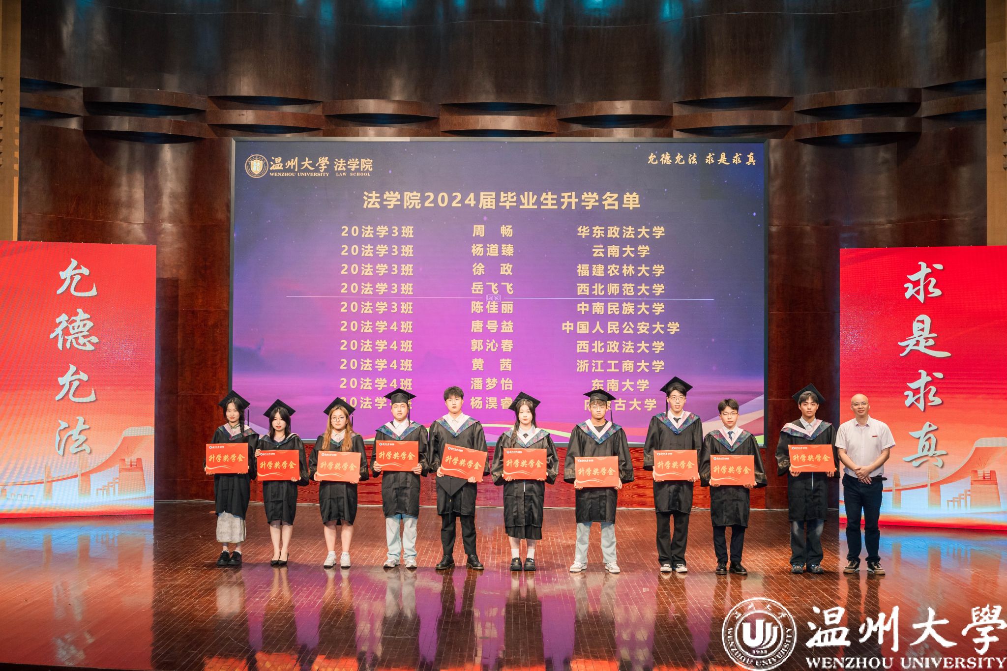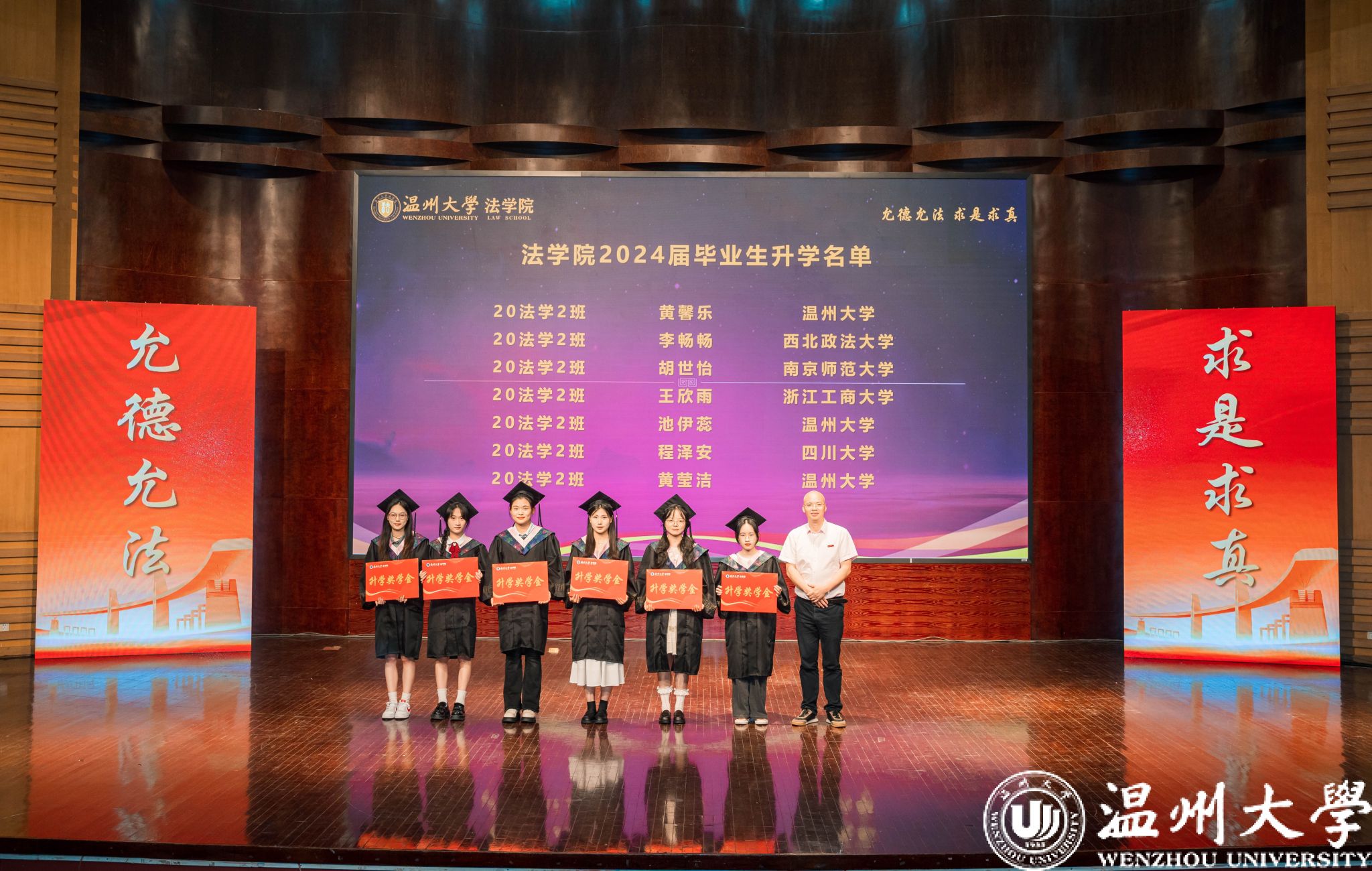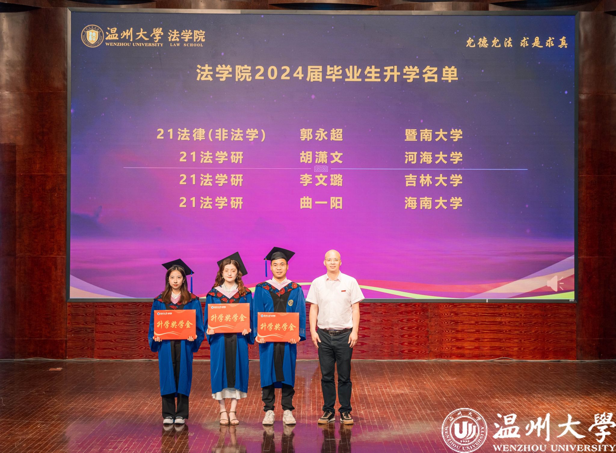 在见证一群才华横溢的毕业生满怀激情、准备迈向光明未来的重要时刻,院长王宗正教授向所有毕业生致以衷心的祝贺和美好的祝愿,并向所有为学生们的健康成长提供关怀与辛勤付出的家人、导师、朋友表达了深切的感激之情。毕业之际,王院长对即将解锁人生新篇章的毕业生们提出了三点叮嘱:第一,与其上岸,不如造岸,找到当下的意义,构建内心坚实的彼岸;第二,与其过适从的人生,不如全力以赴,抓住任何有可能的机会,勇敢试错,大胆探索,努力在青春赛道上跑出自己独特的魅力;第三,与其随波逐流,不如掌舵前行,面对法考、考研、考公、就业等规划与安排的冲突所带来的挑战与变化,要及时调整心态,努力克服障碍与困难。王宗正院长也向毕业生们送上了诚挚的祝福,“无论你们身处何处,温大看片狂人 永远是你们的家,法学大门永远为你们敞开。”