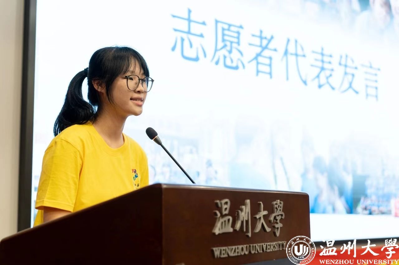 温州市侨联党组书记吴娜丽也为即将踏上征程的志愿者们送上了三大法宝,助力志愿者们勇敢前行。一是心怀热忱,投身志愿服务。吴书记深情回顾了快乐营十五年的历程,指出每一份侨宝成长档案、每一段成长足迹,都是志愿者们用爱与责任编织的珍贵记忆。她勉励志愿者们继续延续这一优良传统,以满腔的热情和无私的奉献,与侨宝们建立起深厚的情感纽带,用心用情推动各项任务有序落地,让快乐营成为侨宝们心中最温暖的港湾。二是严格管理,做好保障工作。吴书记特别强调安全保障的重要性,要求志愿者们加强安全意识,严格遵守各项规章制度,共同为侨宝们营造一个安全、健康、快乐的成长环境。三是不负韶华,奏响青春乐章。吴书记寄望志愿者们珍惜这难得的21天实践机会,深入了解奉献社会的意义与价值,从中收获宝贵的人生体验。在公益服务的道路上不断锤炼自我、提升能力,最终成长为社会的栋梁之材。
