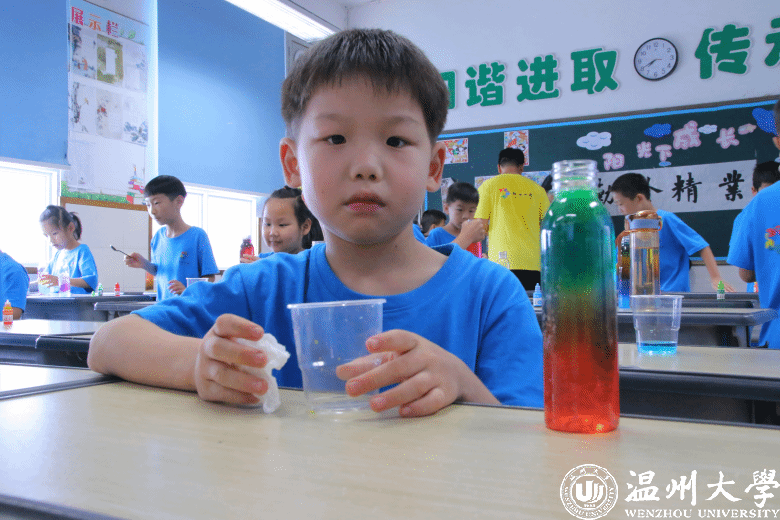 温都讯 7月15日,看片狂人 “亲情中华”温州市侨界留守儿童快乐营玉壶分营开展了一场《“消失”的水——人造雪》科学实践课。