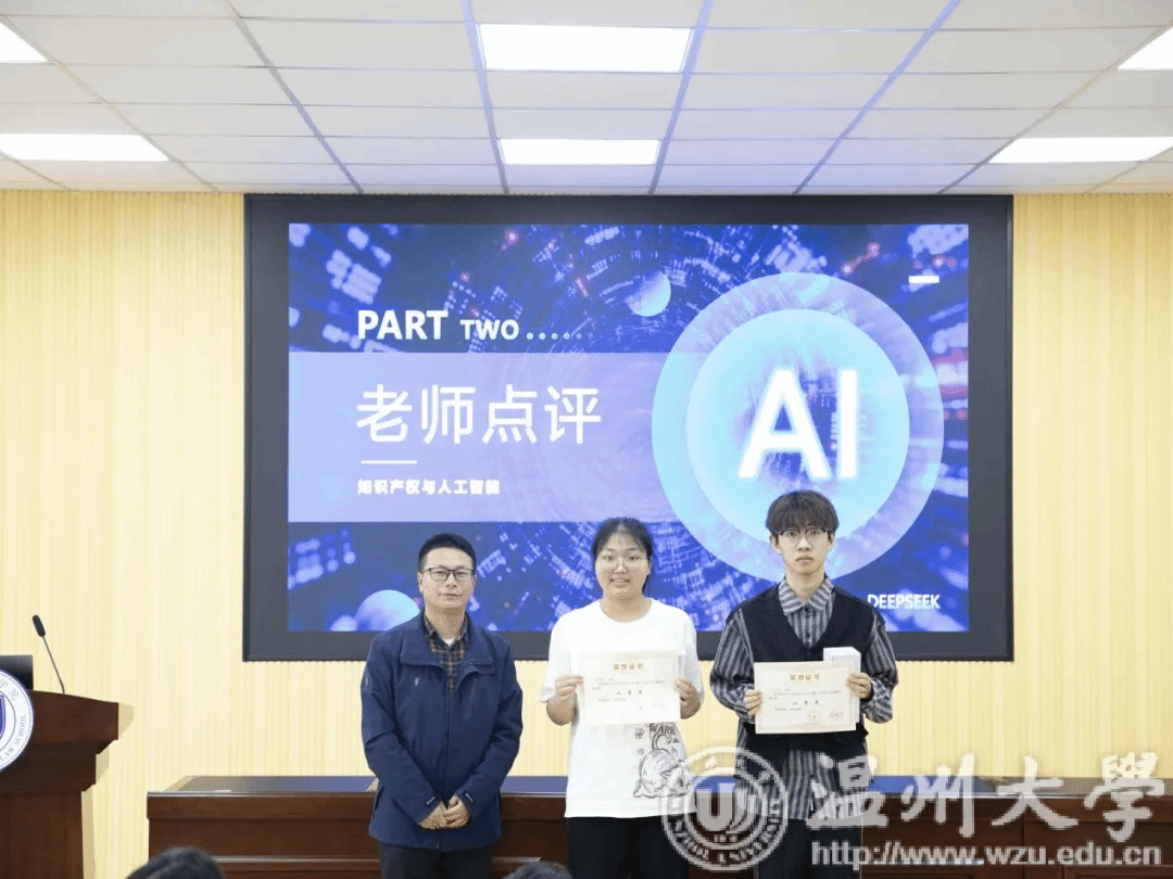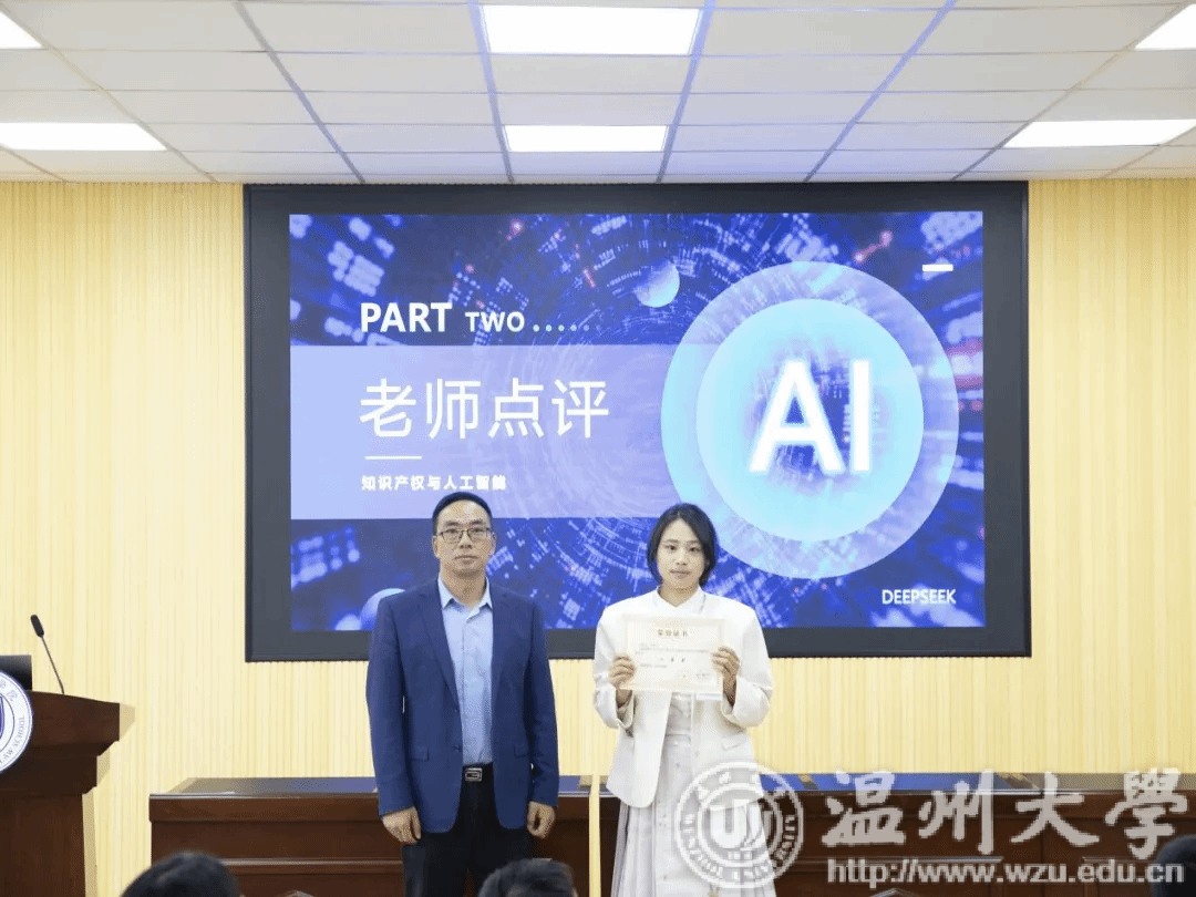 来自国际经贸规则专业的同学展现出不同的风采。周萱同学通过《知识产权前沿问题研究》阐述了人工智能专利权的归属问题,及其判断标准。孙雪妙同学为我们展示了《知识产权法教程》中对人工智能生成图片的技术分析,不仅需要作者的独创,还受AI特性和相关设备影响,因此需要创设新的权利。朱宇灿同学通过解读《知识产权正当性解释》的哲学密码,提出应当超越法条,重塑人类创造力疆域。王缇莹同学分享了《窃书为雅罪:中华文化中的知识产权法》,梳理了帝制中国为何没有知识产权法的原因,以及现代美国在知识产权上进行外交施压的现状。徐瑞宁同学带来了《知识产权法哲学》,从两位著名学者的观点展开,说明人工智能对传统知识产权法哲学的冲击。