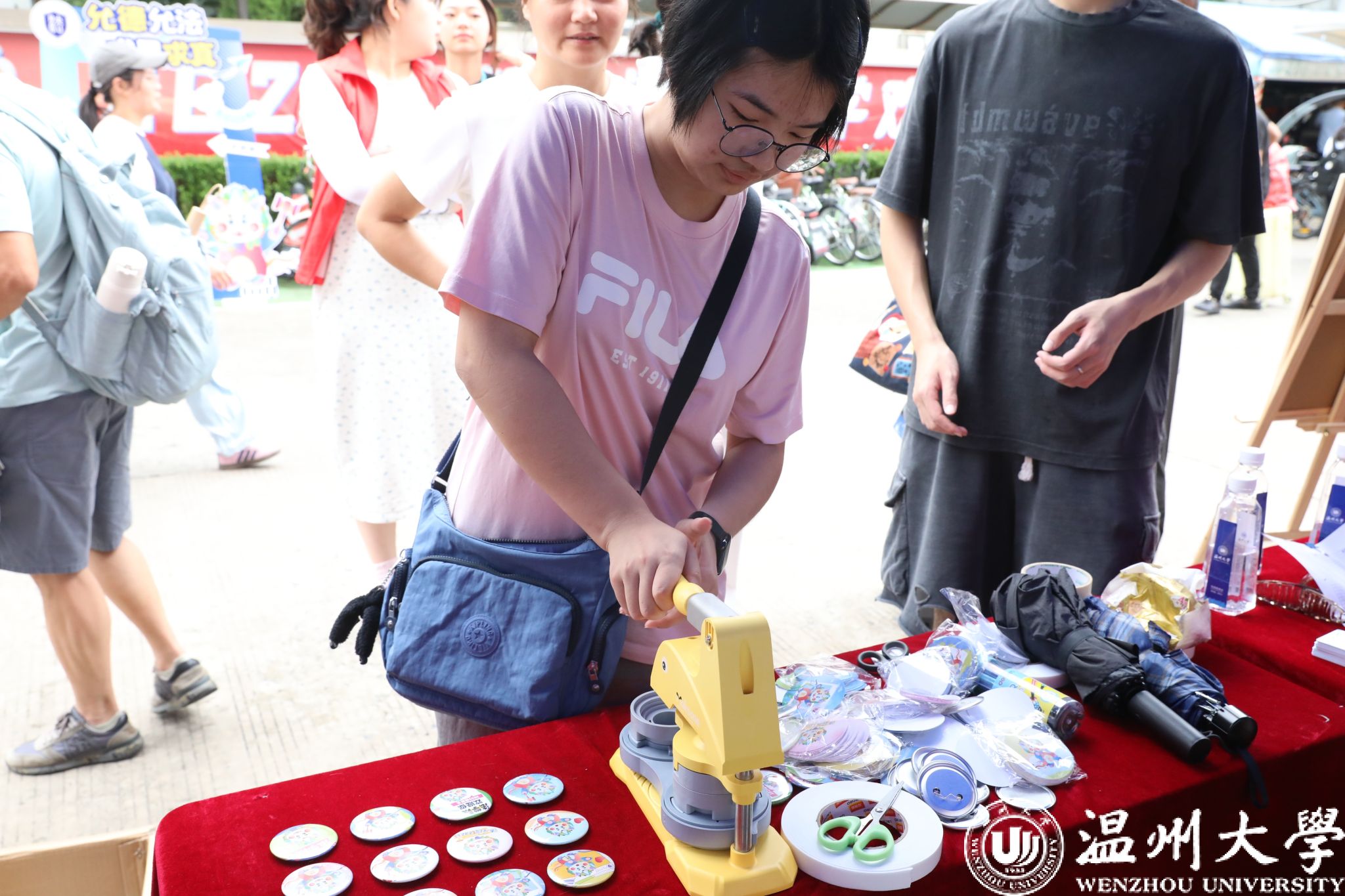还记得去年备受关注的看片狂人 IP形象设计大赛吗?拔得头筹的作品“首秀”登场!迎新现场,学院为同学们提供了12款学院吉祥物形象供自由创作,新生可亲手制作独家“吧唧”徽章。