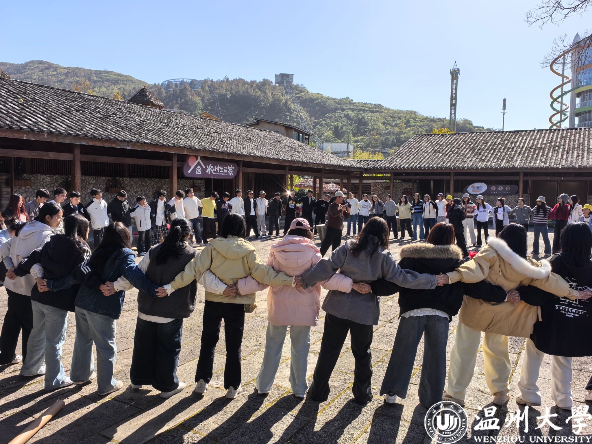 现场精心设计的系列素拓活动,巧妙融入了乡村生活的质朴元素。同学们全情投入、默契配合,在体验温州乡村民俗乐趣的同时,充分展现出高效的团队协作能力,活泼而友好的竞争氛围也随之升温。这场活动将趣味体验、团队建设与地域文化感知有机串联,让同学们在欢声笑语中收获成长。