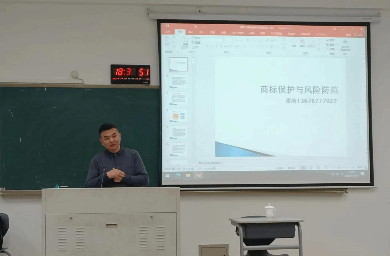 2023年12月18日晚上,北京德恒(温州)律师事务所谭浩律师为同学们开展企业法务专题——《商标保护与风险防范》的讲座,本次学术讲座由周湖勇老师主持,近百名学生到场聆听。