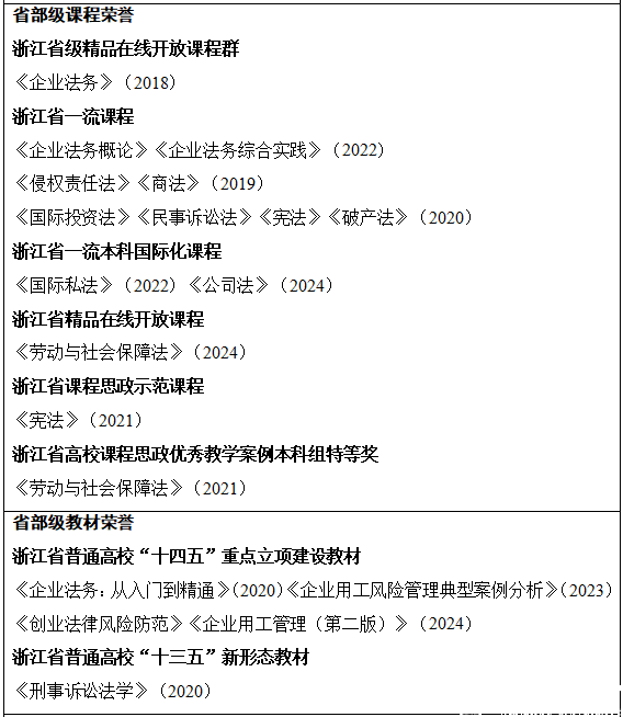 法学专业师资力量雄厚,现有专任教师中具有博士学位比例高达95%以上,高级职称比例居省内前列,聚集有“全国十大杰出中青年法学家”提名奖获得者、省十大中青年法学家、钱江学者、省151人才、省“五个一批”人才、省中青年学科带头人、省教学名师、温州市“瓯越特支计划”人文社科领军人才等一大批优秀师资,近年来承担国家社科基金重大项目2项、重点项目4项及一批国家级和省部级项目,多项成果获省部级荣誉,服务社会成效显著。同时,依托校友资源等合作关系,从司法机关、行政机关、律所和企业等聘请具有扎实实践经验的实务专家共计25名担任校外实务导师,充分整合校内外优质实践资源培养提升学生的实践创新能力。
