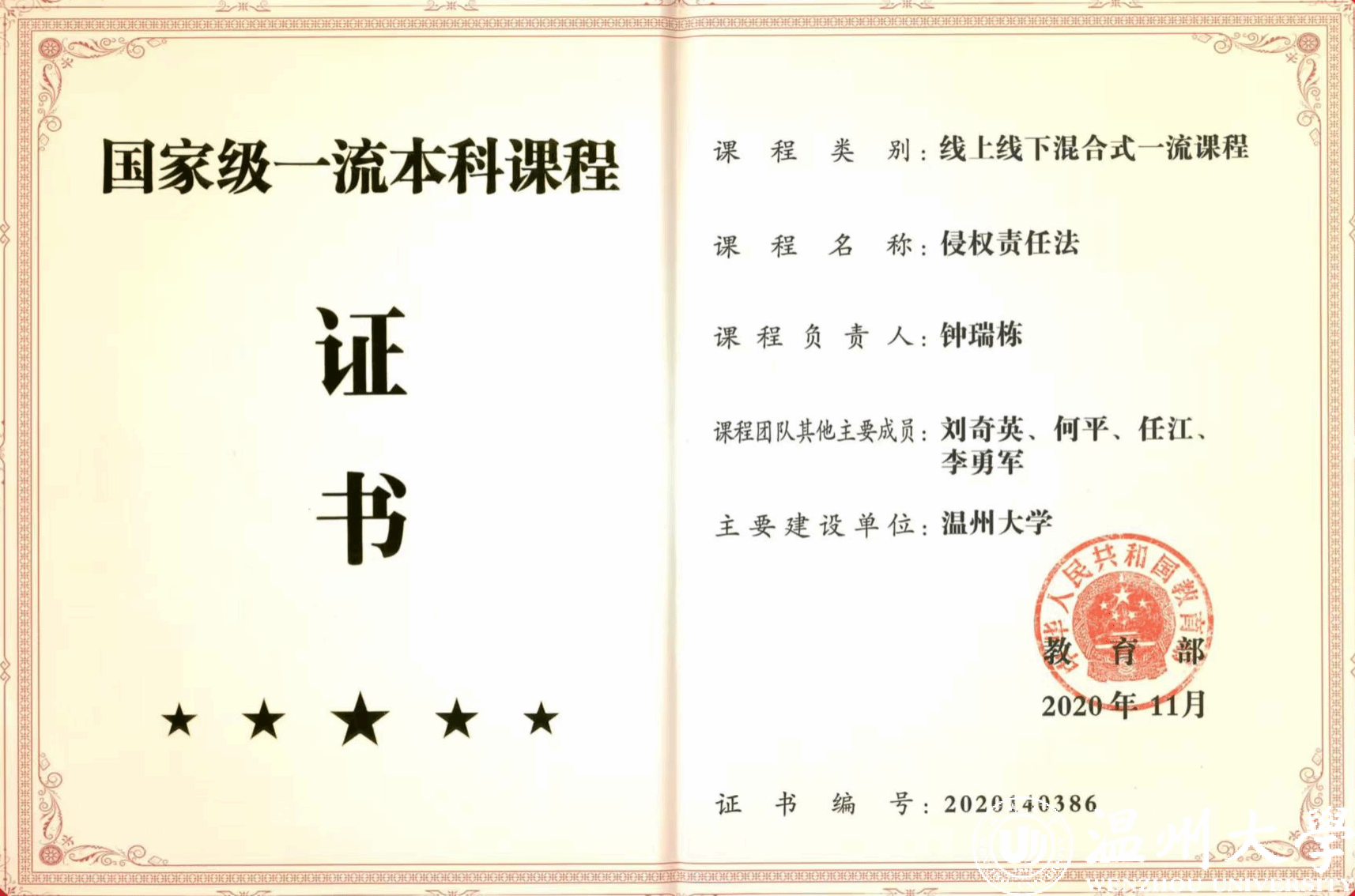 《侵权责任法》获评国家级一流课程
