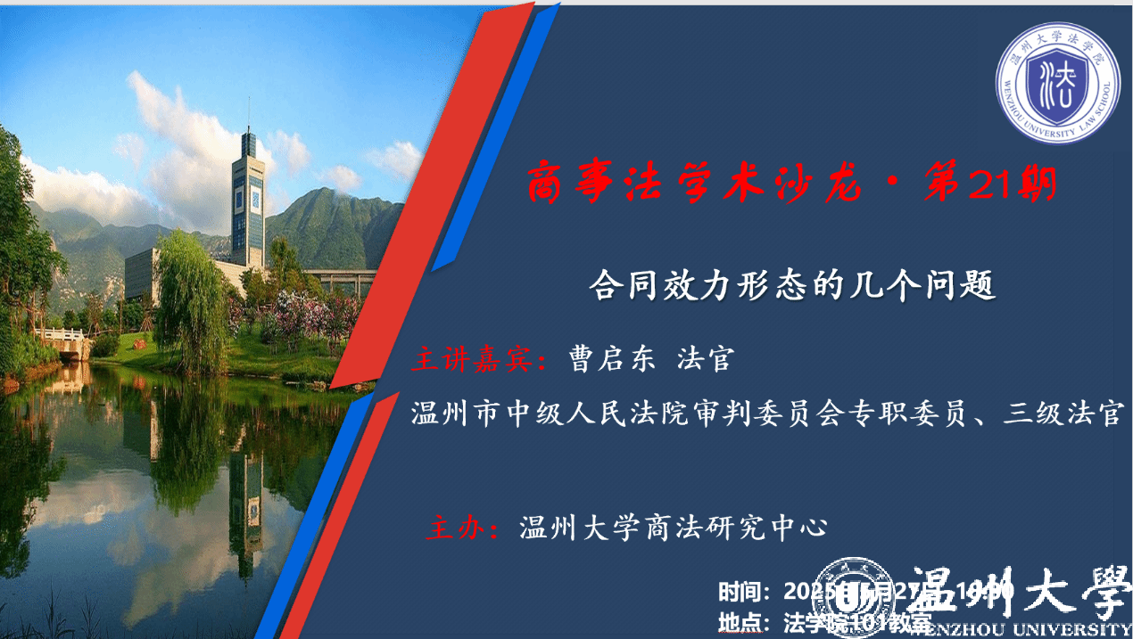 2025年5月27日,邀请温州市中级人民法院审判委员会专职委员、三级法官曹启东法官到看片狂人 讲学,主题为《合同效力形态的几个问题》。