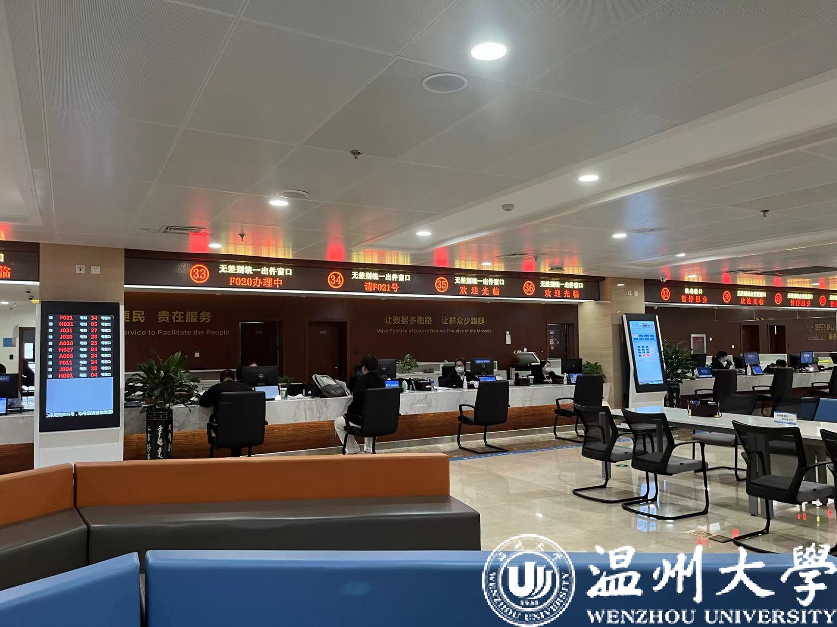 下午2点到达温州市龙湾区行政服务中心,进入中心大厅内部映入眼帘的是敞开式的办公区域中一排排工作人员们认真办事的场景,这种敞开式的办公方式大大方便了客户,提高了办事效率。大厅中各个窗口所对应的办事事项不同,同学们了解到如果遇到需要办理的手续不光是可以到行政服务中心办理,还可以通过浙里办app进行线上办理,高效办理的同时可以节省更多的时间,享受智能化服务带来的便利。了解到基本信息之后,大家兴高采烈地参观了行政楼的各个楼层争取弄清楚一件事的内容、对象、需求材料、流程、常见问题等详细信息。