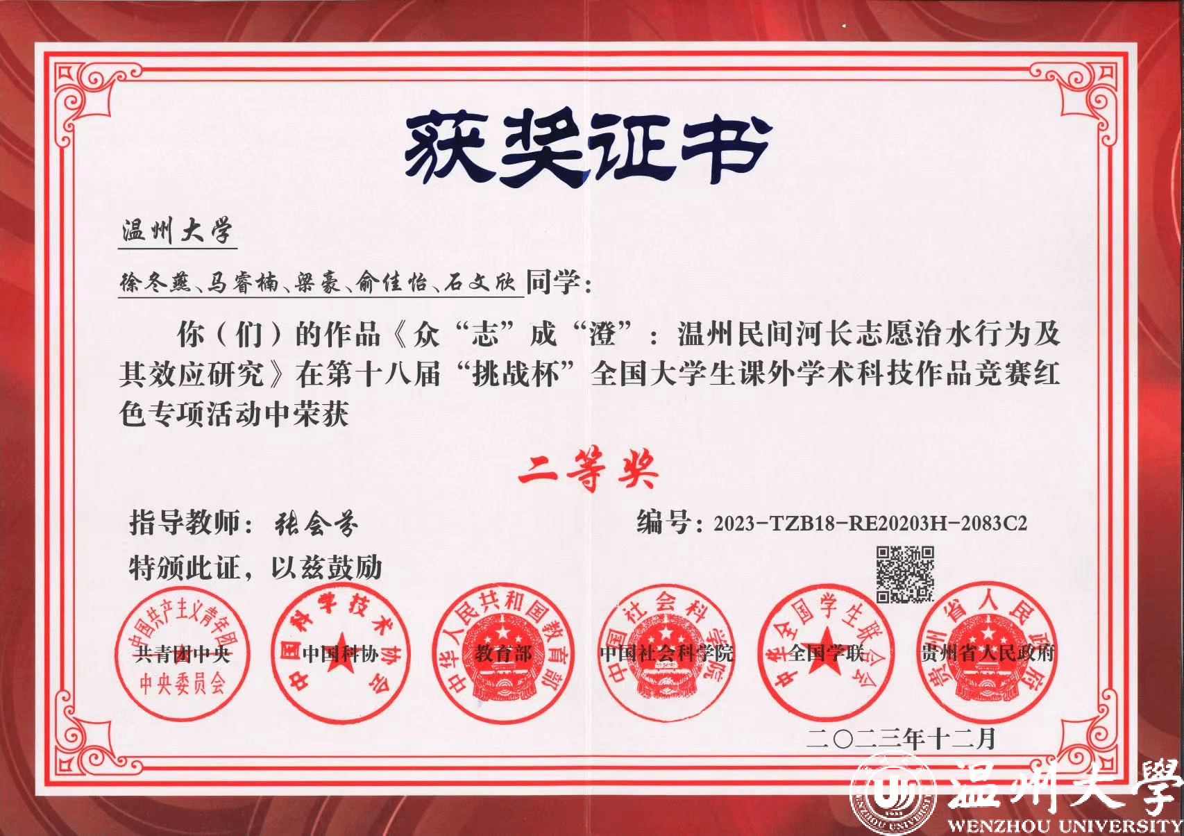 图3 第十八届“挑战杯”全国大学生课外学术科技作品竞赛红色专项赛二等奖