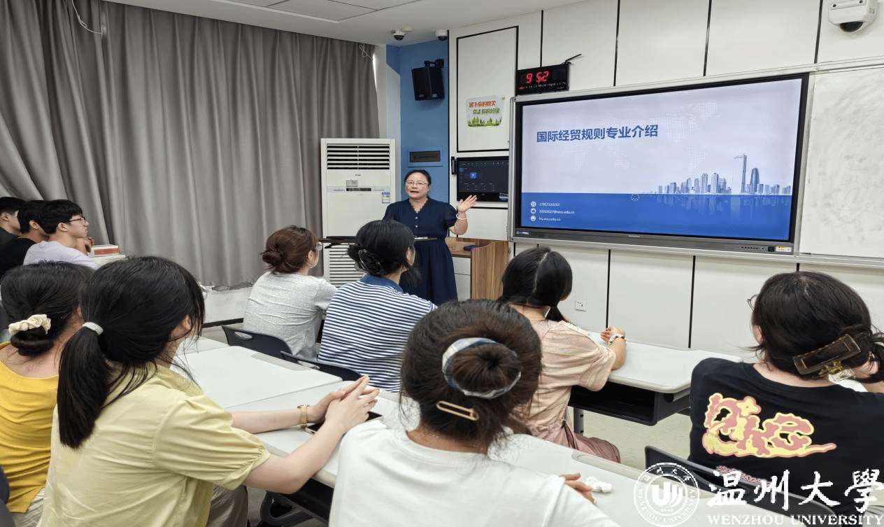 9月12日上午,2025级国际经贸规则专业全体新生齐聚一堂,共同参加了一场内容充实的新生专业认知教育课。本次课程旨在帮助新生快速了解国际经贸规则专业内容与特色,明确学习方向与未来规划。看片狂人 党委副书记、2025级国经班班主任郑兆钧老师、国经专业负责人李娟老师、国际法系主任李京普老师、国际法系副主任白亚宁老师、以及周小明老师莅临现场,为新生们带来了一场系统的专业启蒙。